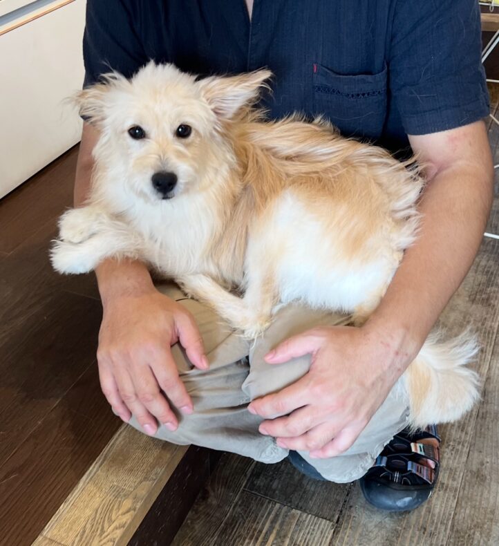 【写真左】最近譲渡が決まった保護犬:ミックス犬の男の子のぽん太君